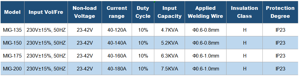 • Solid wire(use gas) and flux-cored wire(no gas) is both available