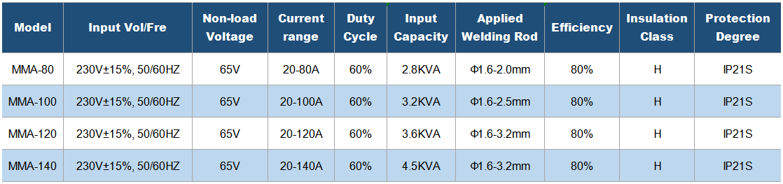• With Hot-Start, Arc-Force, Anti-Sticking function.