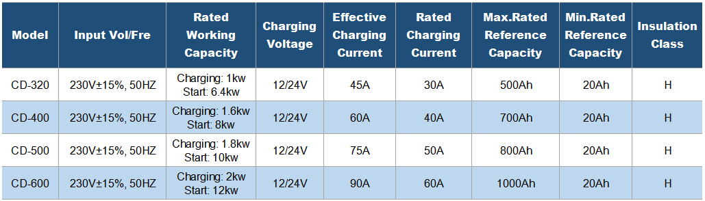 • Single phase, battery charger for charing lead-acid battery with 12/24V voltage.